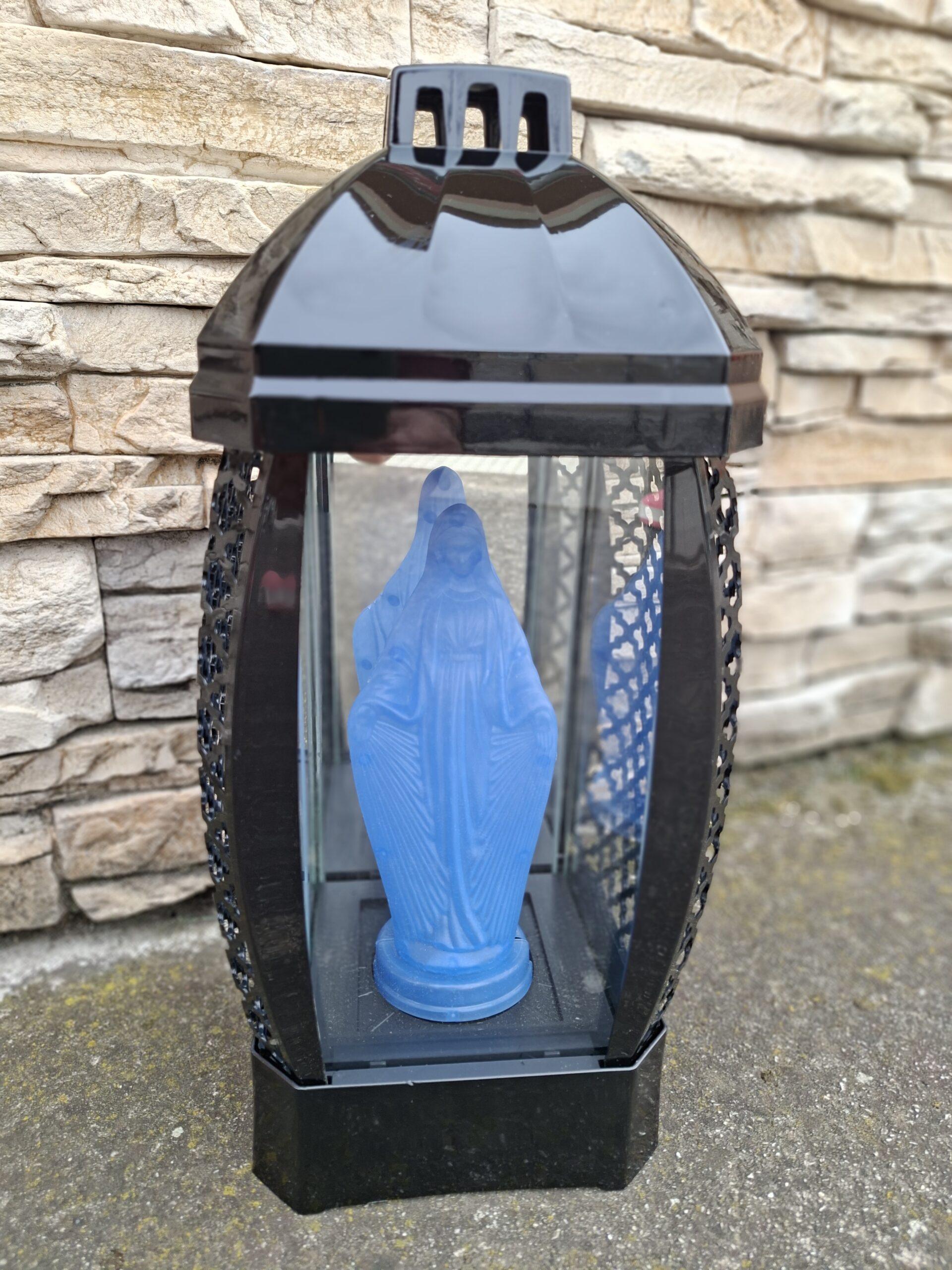 Dôstojný kahanec s motívom Panny Márie, ktorý predstavuje symbol večného svetla a spomienky. Vďaka jemnému modrému LED podsvieteniu podobizeň Panny Márie krásne vynikne aj v tme a vytvára pokojnú, pietnu atmosféru.