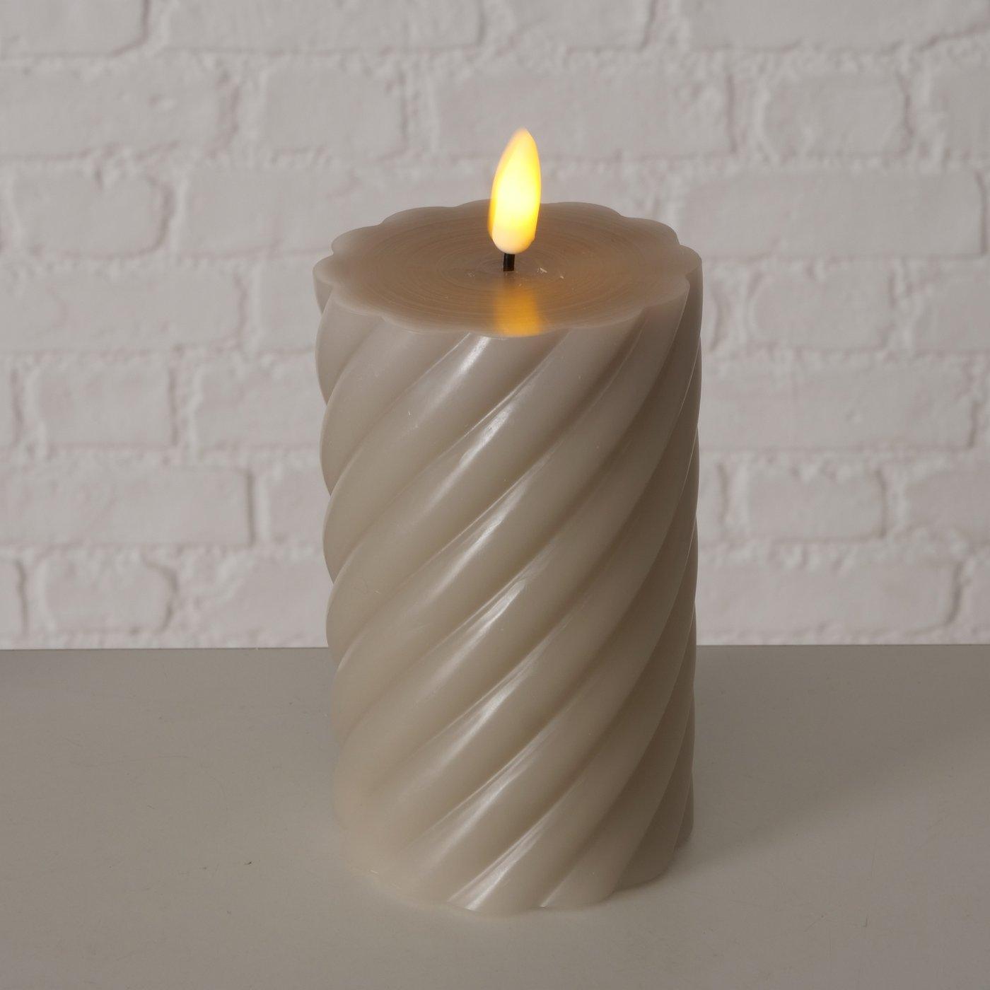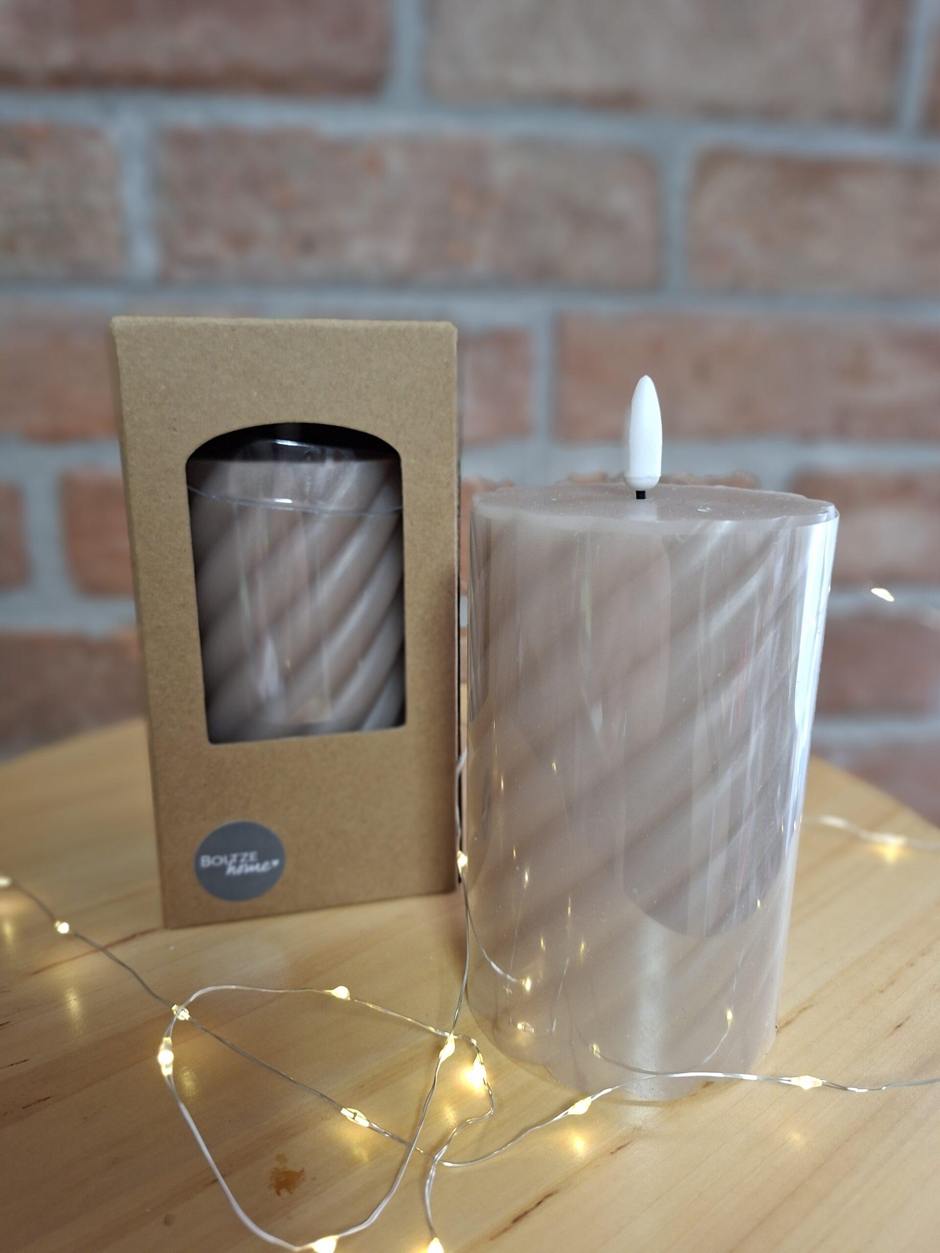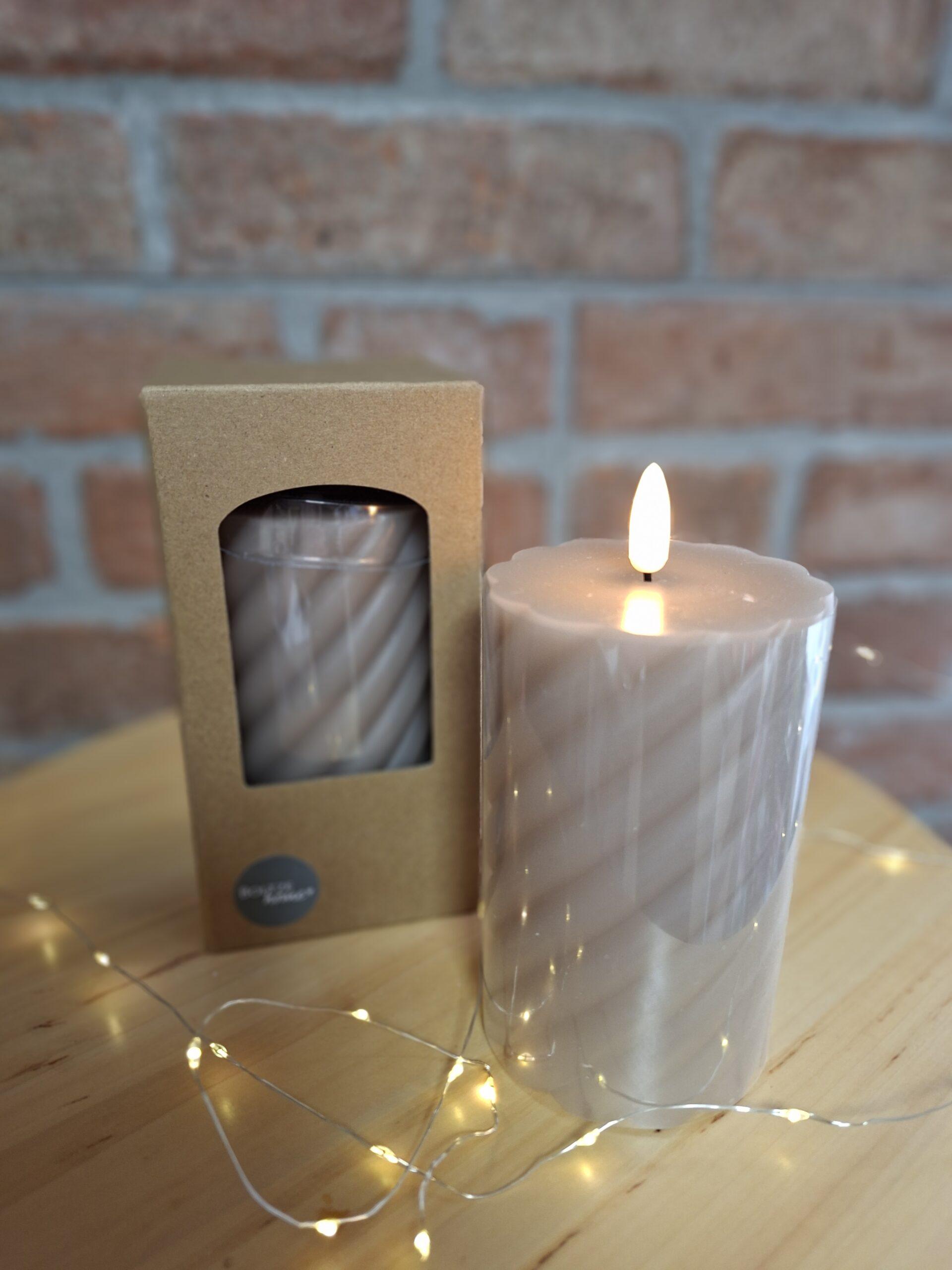 LED sviečka Wrap je vyrobená z parafínu, dodáva sa v béžovej a bielej farbe a meria 12,5 cm na výšku a 7,5 cm na priemer. Má teplé LED svetlo s funkciou blikania a časovačom, napájané vymeniteľnými batériami. Posuvník uľahčuje ovládanie. Dizajn je v súlade s prírodným štýlom bývania.