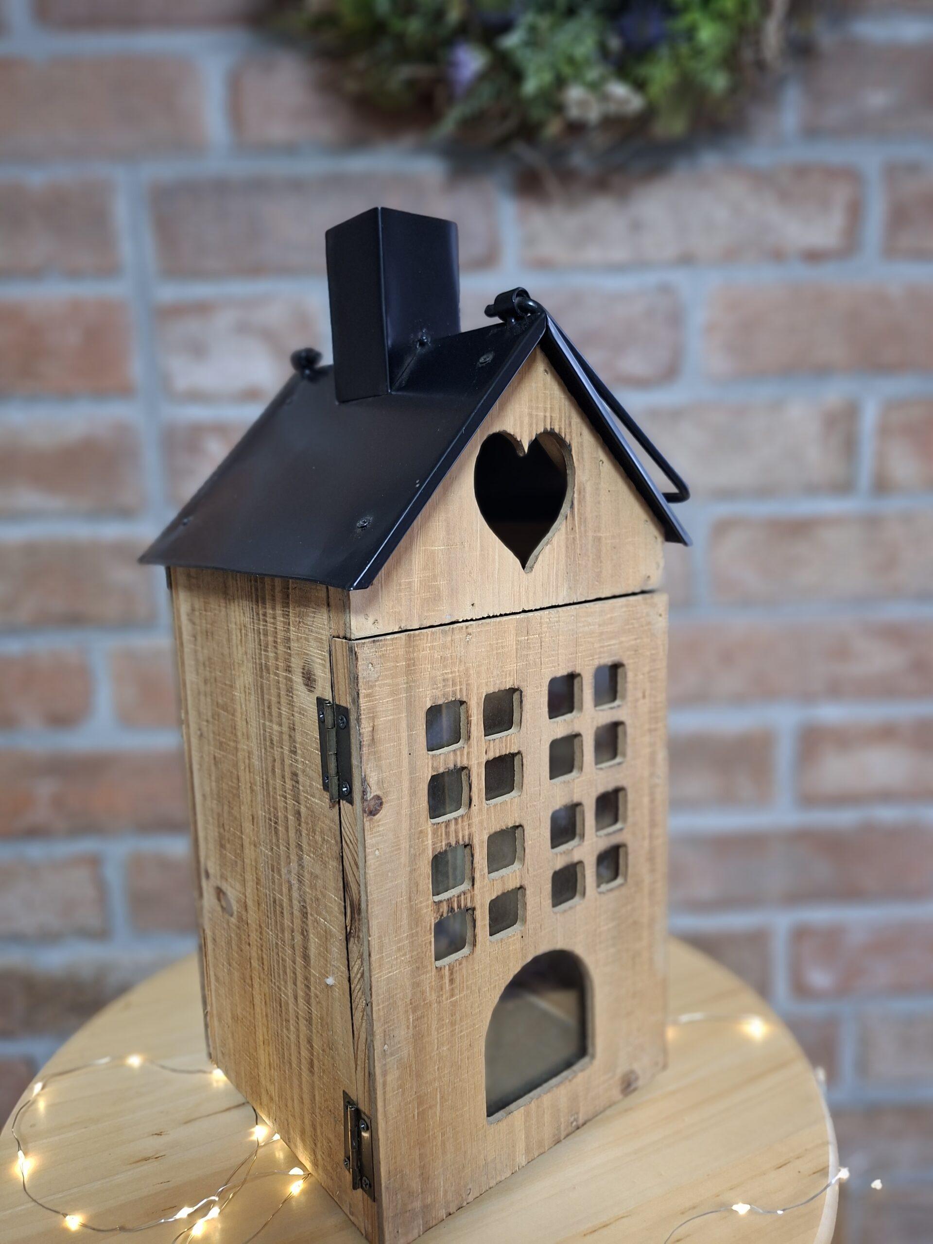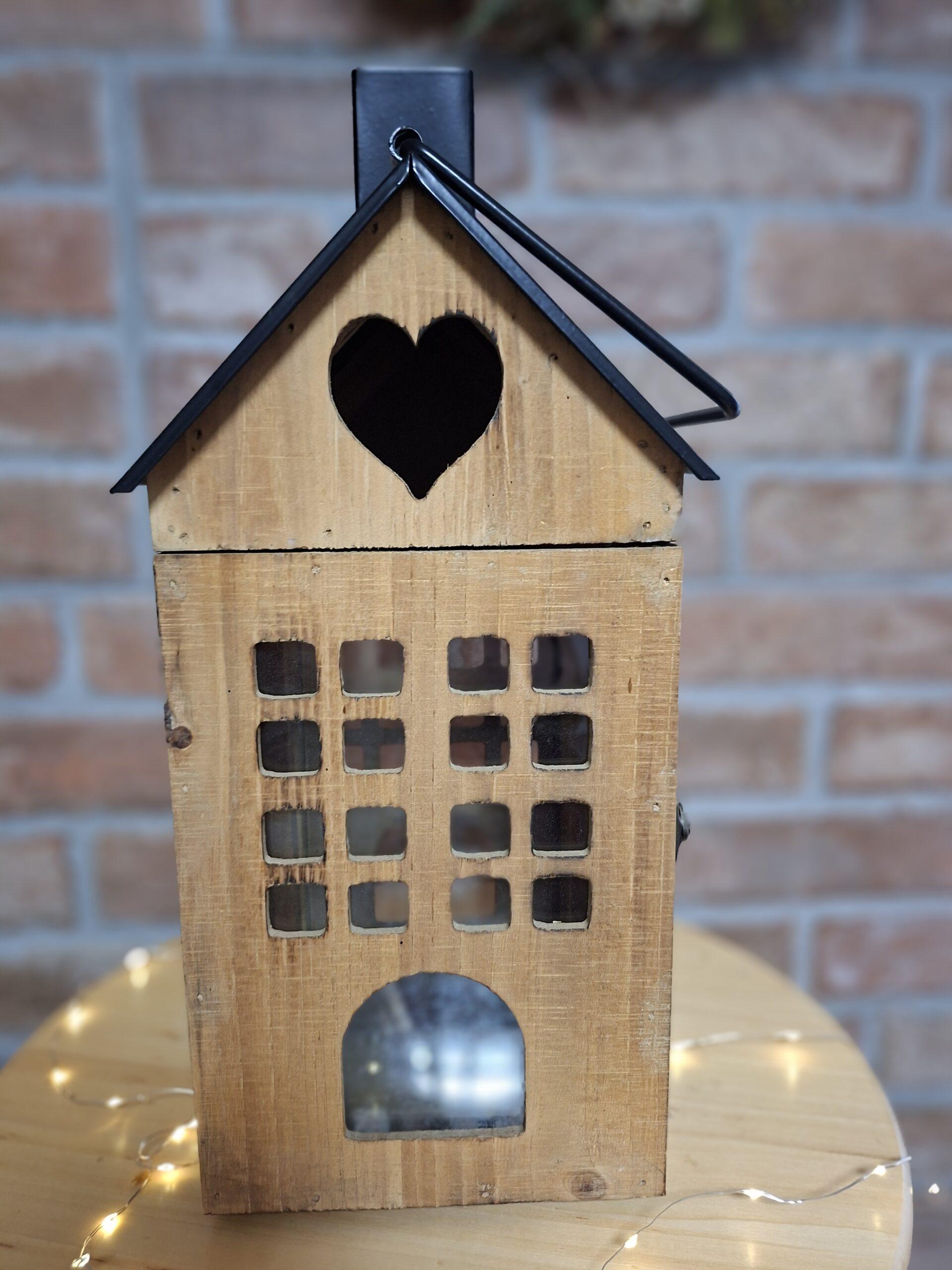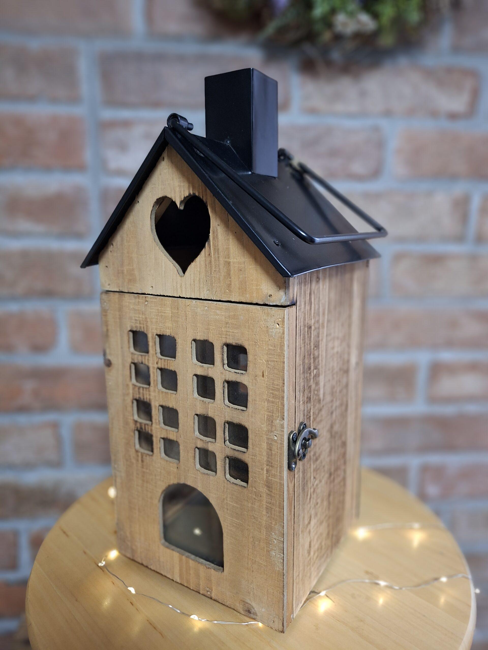 Štýlová drevená lucerna v tvare domčeka vytvorí vo vašom domove príjemnú a útulnú atmosféru. Kombinácia dreva, skla a kovu pôsobí elegantne a zároveň rustikálne. Vhodná na sviečku alebo LED sviečku, ideálna do interiéru aj na krytú terasu.