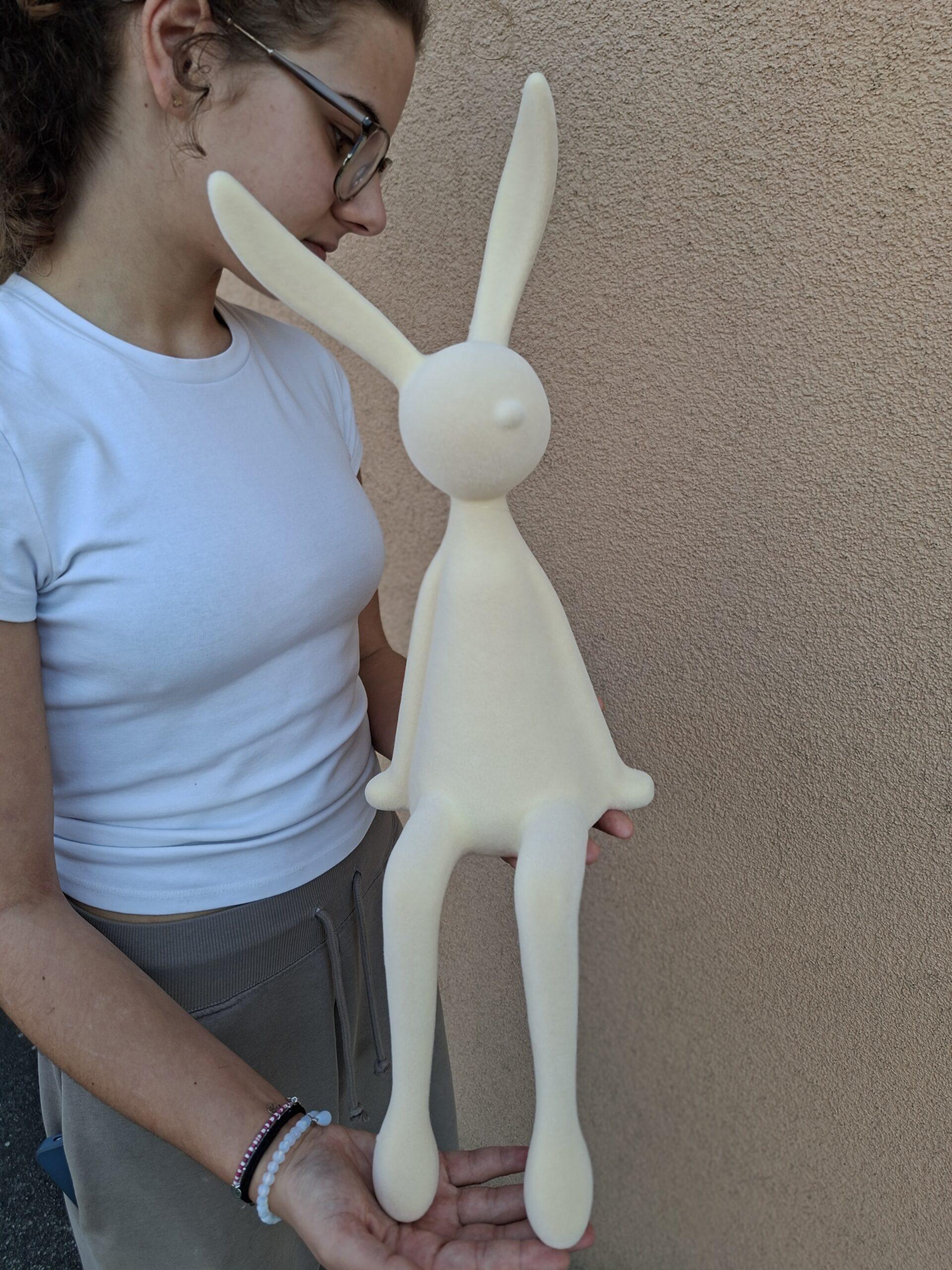Charakteristickým prvkom sú dlhé nohy, ktoré visia – ideálne na posadenie na poličku, komodu alebo do aranžmánu pred dvere, napríklad do koša plného jarných kvetov, kde vytvorí milý sezónny detail.