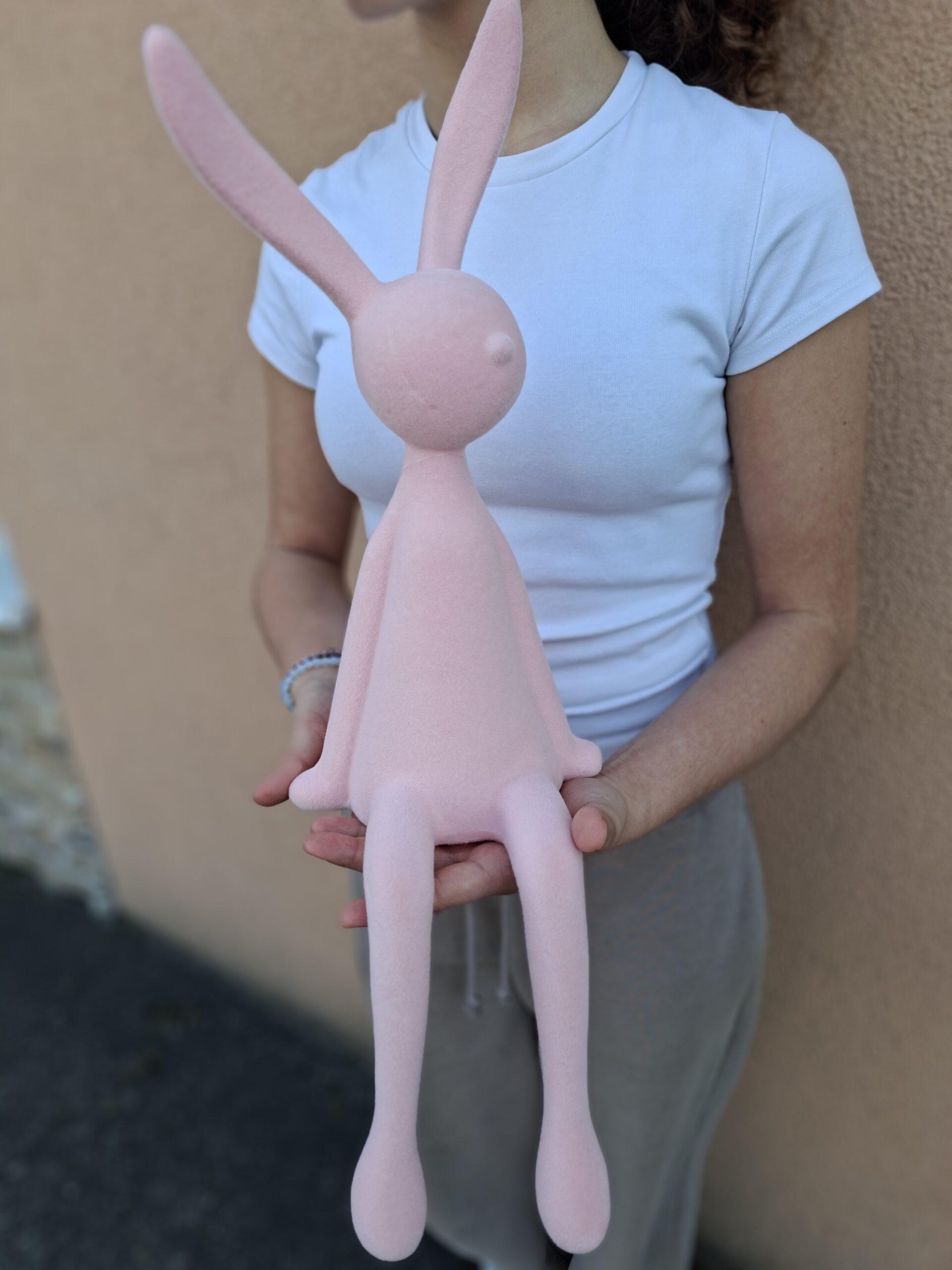 Elegantný dekoračný zajac je štýlovým doplnkom jarnej a veľkonočnej výzdoby. Telo je vyrobené z pevnej umelej hmoty, ktorá zabezpečuje stabilitu, a potiahnuté jemným textilným materiálom s efektom zamatu. Vďaka tomu pôsobí príjemne a vkusne, no zároveň si zachováva svoj tvar.