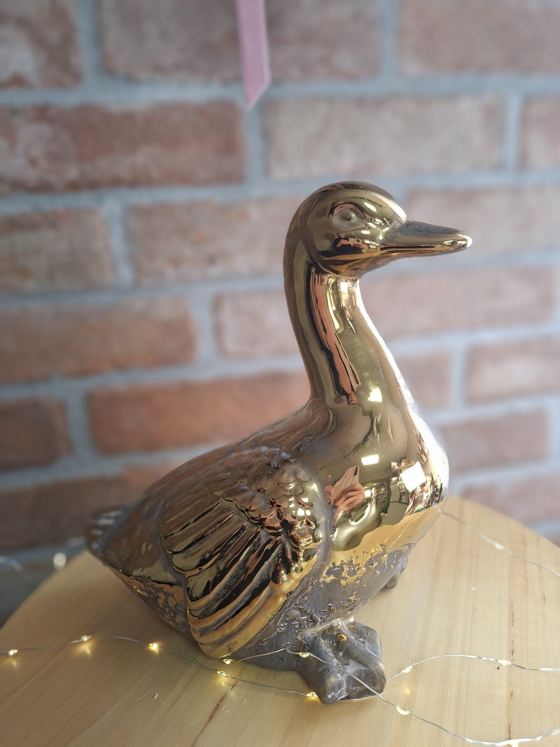 Keramická zlatá kačica výška 25,50 cm. Vhodná ako do prírodných aj umelých aranžmánov, vencov, či jarných dekorácií.